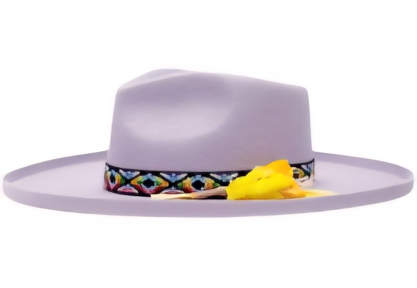 Exude elegance whenever you wear the statement-making Lavender Fedora for women. From the exclusive fiery wool, the grosgrain band, cord and flower trim, and curled brim. This piece gives you the luxurious comfort you always wanted in a hat.