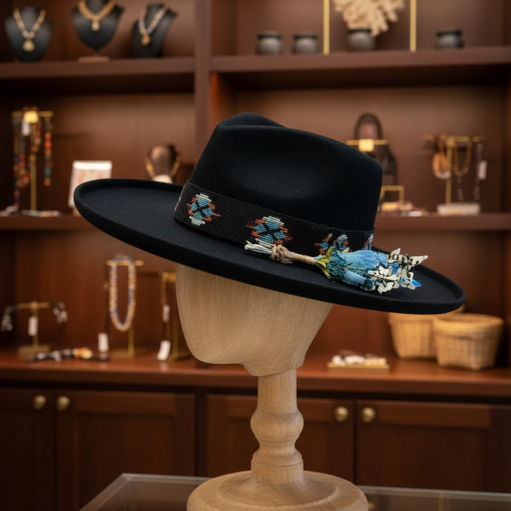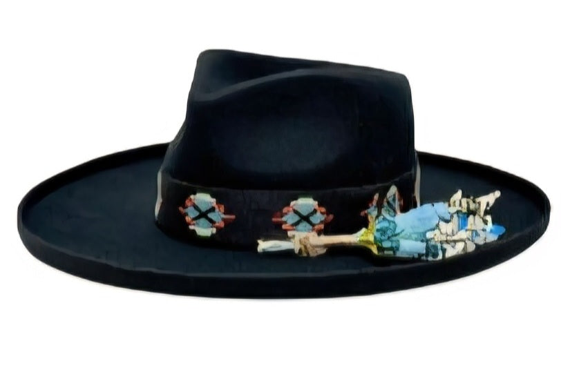Make a bold impression with this refined wool felt fedora, featuring an elegant teardrop crown and gracefully curled brim adorned with decorative florals. A sophisticated accessory that elevates any ensemble with timeless style and undeniable presence.